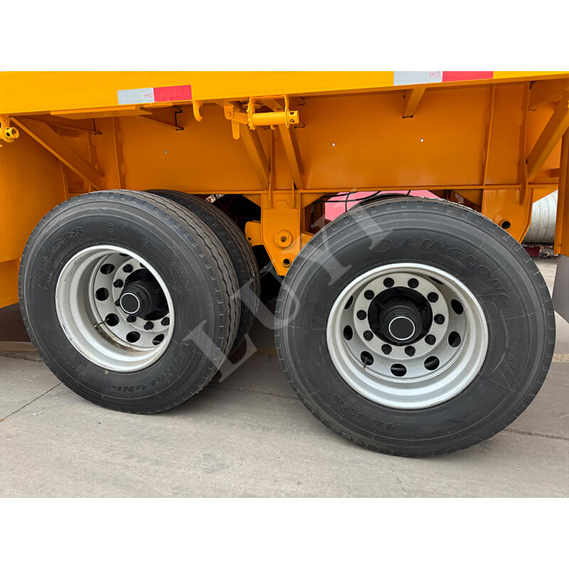 Автомобиль оснащен двухосными 13-тонными мостами, опционально марок BPW или Fuhua в сочетании с надежной механической подвеской, обеспечивающей высокую устойчивость при движении; на нем используются шины 12R22,5, подходящие для различных дорожных условий, а стандартные 28-тонные выносные опоры обеспечивают безопасность парковки. Шкворень предлагается в двух вариантах: 2-дюймовый (50 мм) или 3,5-дюймовый (90 мм) JOST, который совместим с различными тракторами. Конструкция колонны позволяет надежно фиксировать древесину и предотвращать ее смещение во время транспортировки, а цвет можно настроить в соответствии с потребностями клиента, сочетая практичность и гибкость, обеспечивая эффективное решение для логистики и транспортировки древесины.