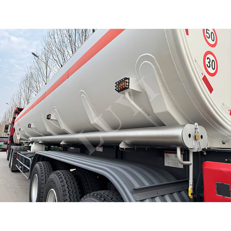Корпус резервуара с размерами 12500×2500×3600 мм в основном изготовлен из стали, а при необходимости его также можно комбинировать с материалами из углеродистой стали или алюминиевых сплавов. Три оси тщательно отобраны от известных брендов, включая CIMC Dongyue, FUWA и BPW, и сочетаются с механической подвеской для обеспечения устойчивости вождения. Ключевые компоненты хорошо оснащены: 28-тонные стандартные опоры JOST обеспечивают стабильную опору; шкворень имеет дополнительные модели JOST размером 2 дюйма (50 мм) или 3,5 дюйма (90 мм); шины предлагаются трех спецификаций, таких как 12R22.5; Листовые рессоры размером 90×13×10 повышают несущую способность. Кроме того, цвет можно настроить в соответствии с потребностями клиента, адаптируя его к различным сценариям транспортировки.