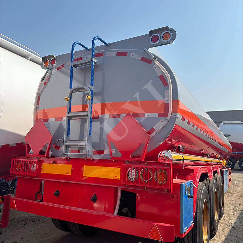 Объем резервуара достигает 35 000 литров, и он большей частью изготовлен из коррозионностойкого алюминиевого сплава или стали для обеспечения безопасности хранения жидкости. Он оснащен 3-осной конструкцией, сочетающейся с пневматической или рессорной подвеской и антиблокировочной тормозной системой (ABS), обеспечивающей стабильное вождение и адаптируемость к сложным дорожным условиям. Он имеет номинальную грузоподъемность, а некоторые модели могут быть дополнительно оснащены функцией саморазгрузки для повышения эффективности разгрузки жидкости. В то же время он поддерживает настройку цвета и сертификацию соответствия, обеспечивая надежное решение для транспортировки жидкостей и тяжелых грузов на большие расстояния.