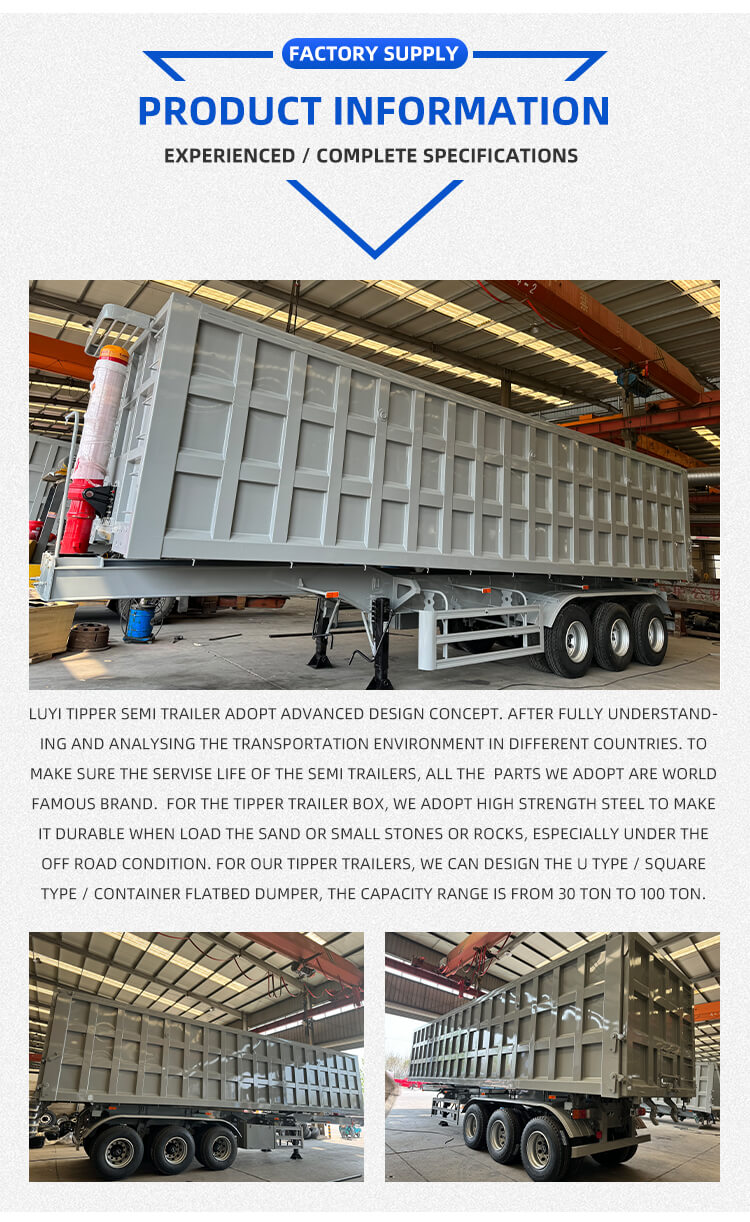 Этот 3-осный полуприцеп с задней разгрузкой и гидравлическим подъемным цилиндром грузоподъемностью 50-60 тонн от LUYI представляет собой тяжелое решение для перевозки песка и гравия. Родом из провинции Шаньдун, Китай, он построен из высококачественной стали и имеет максимальную грузоподъемность 80 тонн, что позволяет ему легко справляться с тяжелыми грузами.
