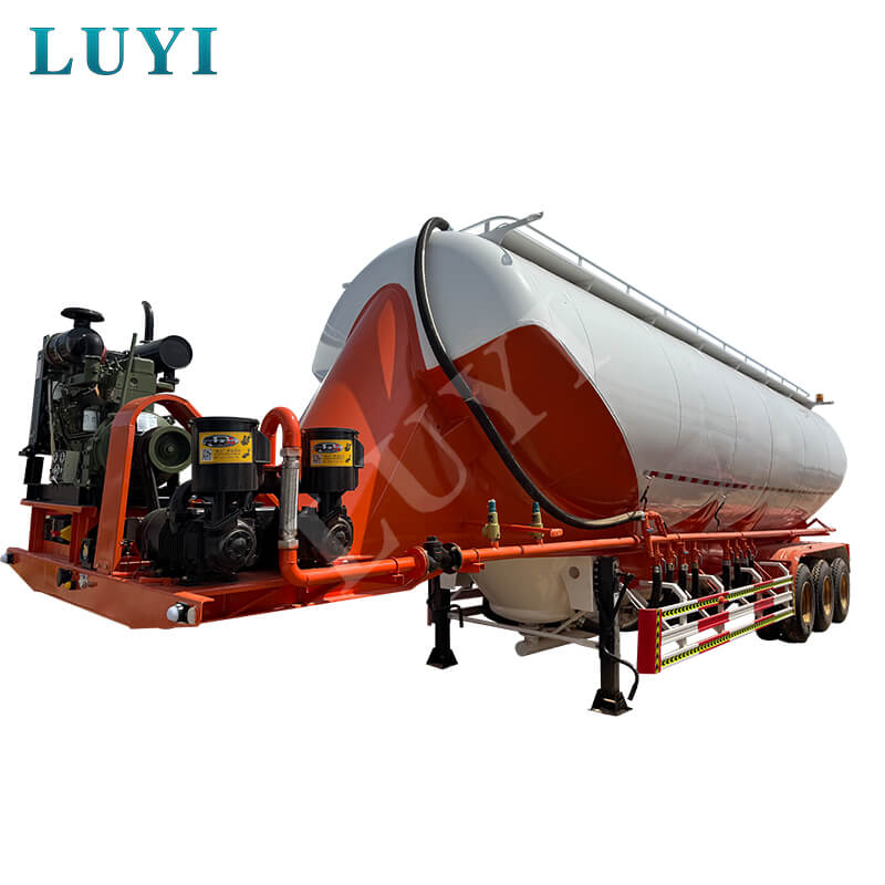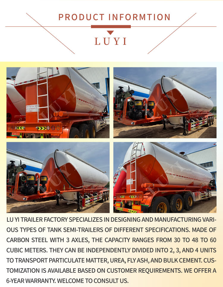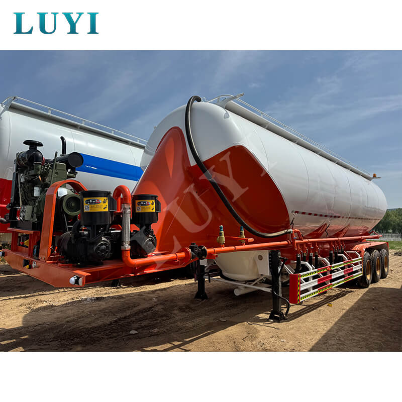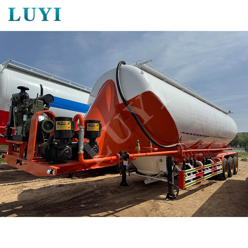 3-осный 50-тонный полуприцеп-цистерна для цемента V-образного типа LUYI, родом из провинции Шаньдун, Китай, представляет собой высокоэффективный грузовой полуприцеп, специально разработанный для перевозки сыпучего цементного порошка, также известный как автоцистерна для порошка, который точно соответствует потребностям сценариев грузовых перевозок.