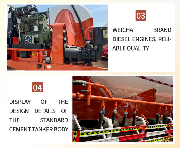 Изготовленный из высококачественной стали, боковые балки прицепа изготовлены из швеллерной стали 16#, что обеспечивает прочную и долговечную конструкцию. Его максимальная эффективная полезная нагрузка превышает 30 000 кг, а грузоподъемность варьируется от 30 до 60 тонн, что позволяет легко удовлетворить потребности различных объемов перевозок. Оснащенный 3-осной конструкцией, шинами 12R22,5 и дисками 9,00-22,5 в сочетании с механической пневмоподвеской он обеспечивает стабильное вождение и адаптируется к различным дорожным условиям. Стандартное 28-тонное шасси гарантирует надежную поддержку во время стоянки. Более того, на него предоставляется 6-летняя гарантия, что полностью снижает проблемы с использованием и обеспечивает надежную и долгосрочную поддержку оборудования для транспортировки цементного порошка насыпью.