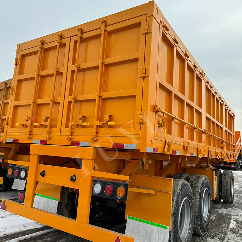 Трехосный самосвальный полуприцеп с двойной тягой и боковой разгрузкой LUYI, произведенный в провинции Шаньдун, Китай, представляет собой высококачественный грузовой полуприцеп, подходящий для перевозки грузов в различных сценариях. Кузов прицепа изготовлен из высококачественной стали, размерами 7500×2500 мм. Он имеет прочную конструкцию и стабильную несущую способность, а максимальная полезная нагрузка составляет 25 тонн, что позволяет эффективно транспортировать контейнеры и сыпучие грузы.