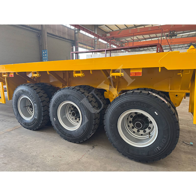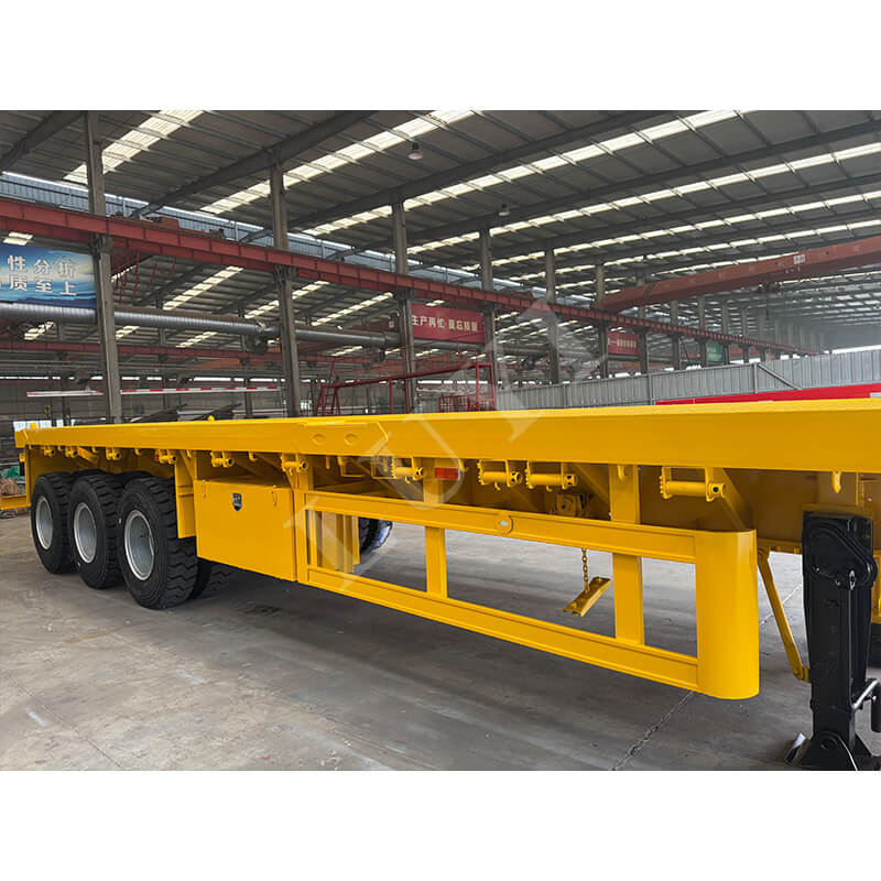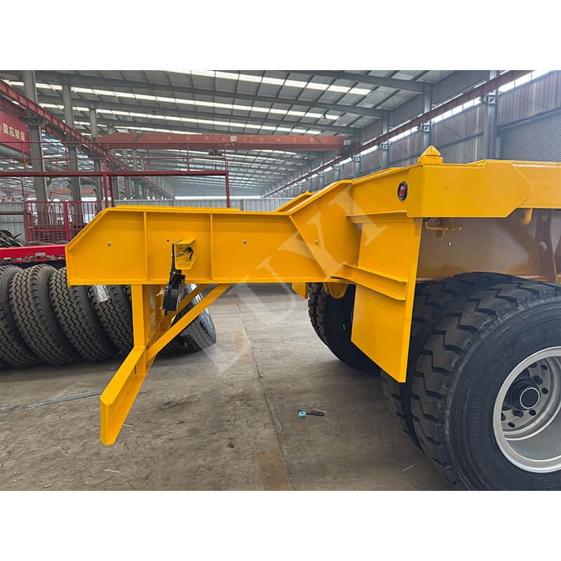 Весь корпус изготовлен из высококачественной стали, имеет прочную и долговечную конструкцию с высокой износостойкостью и устойчивостью к деформации, способную в течение длительного времени адаптироваться к сложным условиям транспортировки. Автомобиль оснащен тремя мостами 13-тонной марки в паре с шинами спецификации 12R22,5 и механической подвеской, обеспечивающей отличную курсовую устойчивость и плавность хода даже в различных дорожных условиях. Стандартные 28-тонные выносные опоры обеспечивают стабильную опору при погрузочно-разгрузочных операциях, а шкворень предлагает два варианта: 2 дюйма (50 мм) и 3,5 дюйма (90 мм), которые совместимы с большинством тракторов. Кроме того, цвет можно настроить в соответствии с потребностями клиента, что полностью соответствует индивидуальным предпочтениям использования и способствует эффективной транспортировке.