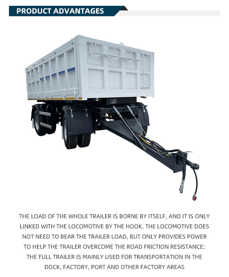 Этот продукт представляет собой 3-осный самосвальный полуприцеп с полным прицепом, специально разработанный для транспортировки угля в горнодобывающей промышленности, с основными преимуществами высокой несущей способности и гибкой адаптируемости.