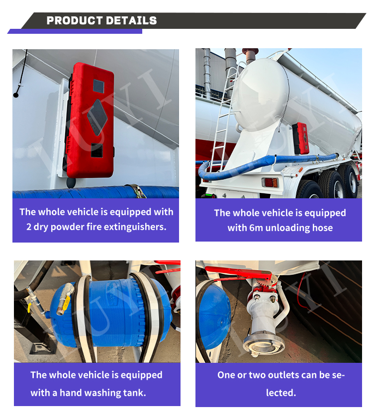 Трехосный полуприцеп-цистерна для порошка объемом 30 кубов марки LUYI, созданный на высококачественной производственной базе в Шаньдуне, Китай, специально предназначен для перевозки сухих сыпучих грузов. Весь автомобиль изготовлен из высокопрочной углеродистой стали, а главная балка изготовлена ​​из стали стандарта Q345B/ST52-3, которая сочетает в себе долговечность и устойчивость к нагрузкам. Научный размер 12000*2500*3980 мм подходит для различных сценариев транспортировки.