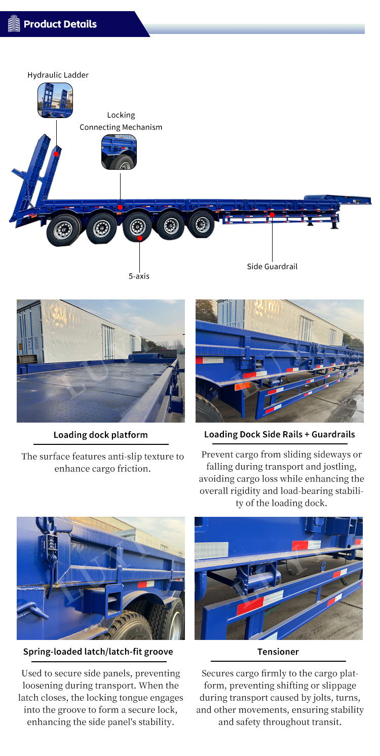 Оснащенный компонентами премиум-класса, он оснащен 13-тонными мостами Fuwa/BPW в сочетании с системой пневматической подвески, обеспечивающей исключительную устойчивость при движении и амортизацию. Двухскоростное шасси Jost массой 28 тонн обеспечивает эффективные операции подъема и опускания. Клиенты могут выбирать из вариантов шин, включая 315/80R22,5, 12R22,5 и 11.00R20, подходящих для различных дорожных условий. Светодиодная система освещения 24 В обеспечивает яркое освещение при низком энергопотреблении, а цвет корпуса можно настроить в соответствии с индивидуальными требованиями. Благодаря надежному качеству Luyi, этот полуприцеп представляет собой надежное решение для перевозки тяжелых грузов для клиентов по всему миру.