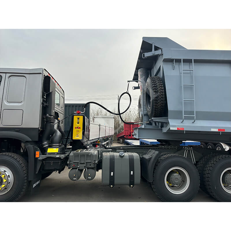 Кроме того, прицеп оснащен 28-тонными выносными опорами стандарта JOST и доступными шинами типоразмеров 12R22.5, 12.00R20 и 11R22.5. Цвета могут быть настроены в соответствии с потребностями клиента. Благодаря превосходной функции разгрузки и надежной работе он становится предпочтительным оборудованием для транспортировки сыпучих материалов.