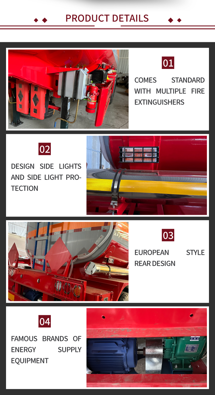 Предлагая широкие возможности настройки, он поддерживает структурные изменения (конструкция с несколькими отсеками, регулируемые впуски/выпуски масла), модернизацию материалов (углеродистая сталь Q235, нержавеющая сталь для устойчивости к коррозии, алюминиевый сплав для облегчения) и функциональные дополнения (волновые перегородки, контроль температуры, интеллектуальные указатели уровня). В качестве полуприцепа он может работать в паре с тягачами, что обеспечивает высокую гибкость (отдельная парковка для технического обслуживания) и строгое соответствие национальным нормам, в том числе требованиям по давлению.e испытания и предотвращение утечек, обеспечивающие безопасную и эффективную транспортировку нефти.