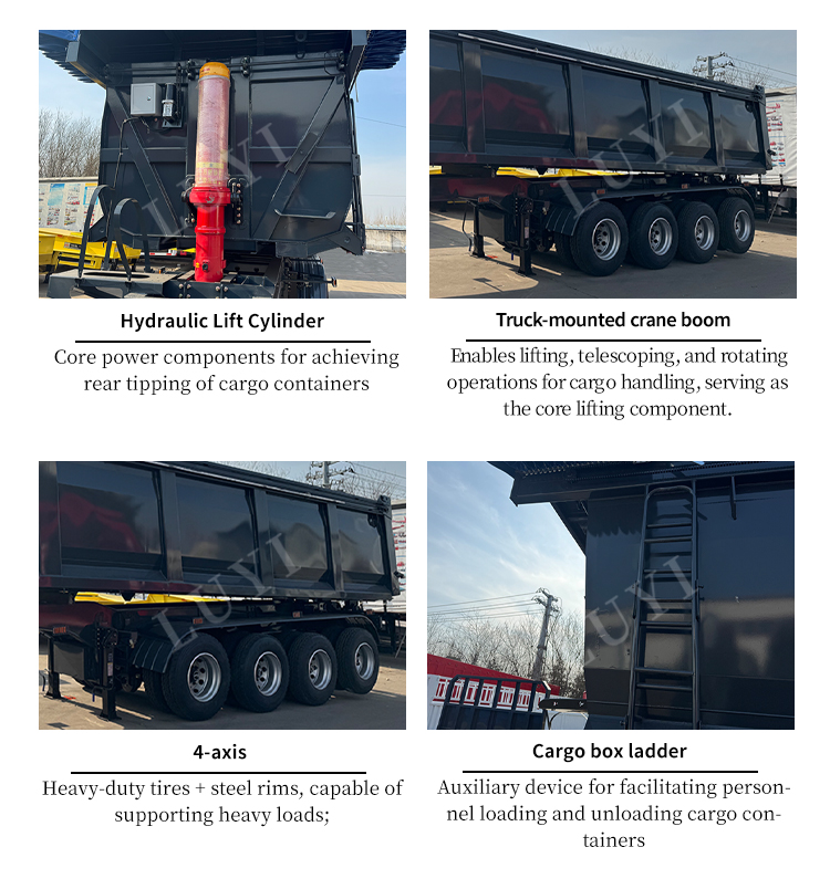 Этот полуприцеп с задним самосвалом LUYI представляет собой тяжелый транспортный полуприцеп производства Шаньдун, Китай, специально разработанный для буксировки тяжелых грузовиков в горнодобывающей промышленности, инфраструктуре и перевозке сыпучих грузов. Изготовленный из высококачественной прочной стали, прицеп обладает превосходными несущими характеристиками: максимальная грузоподъемность 70 тонн и снаряженная масса всего 9 тонн, что обеспечивает оптимальный баланс между тяжелой нагрузкой и легким корпусом. Его габаритные размеры составляют 9000×2550×3700 мм, высота боковой стенки регулируется от 400 до 1200 мм для гибкого размещения груза.