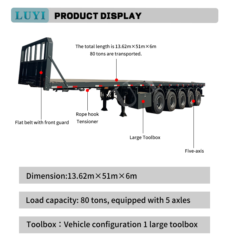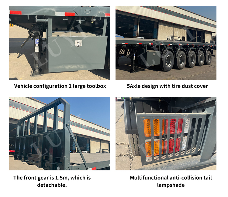 5-осный легкий бортовой полуприцеп LUYI, созданный на производственной базе премиум-класса в провинции Шаньдун, Китай, специально создан для перевозки строительных материалов и служит надежным партнером в секторе инженерной логистики. Изготовленный из высококачественной углеродистой стали, прицеп сочетает в себе легкий вес и жесткость конструкции, снижающую энергопотребление при транспортировке и надежную обработку номинальной полезной нагрузки в 40 тонн. Он легко удовлетворяет потребности в транспортировке на большие расстояния различных строительных материалов, включая камень, сталь и сборные железобетонные компоненты.