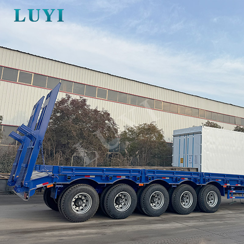 • 5-осный 80-тонный тяжеловесный низкорамный полуприцеп5-осный 80-тонный тяжеловесный низкорамный полуприцеп