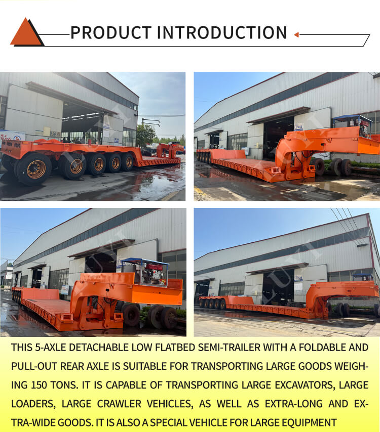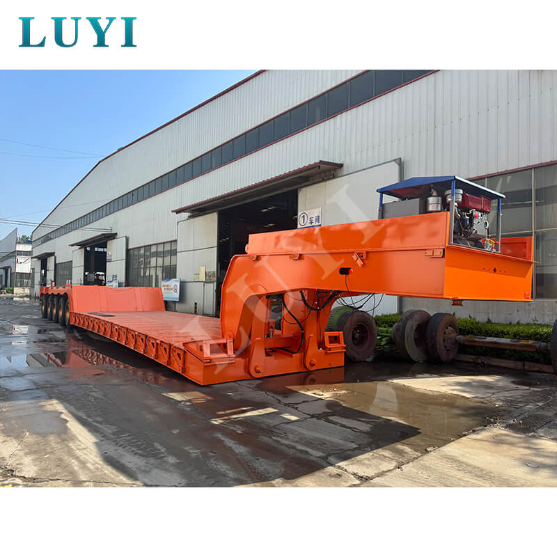 5-осный низкорамный полуприцеп со съемной гусиной шеей LUYI, производимый в Шаньдуне, Китай, представляет собой высокопроизводительное транспортное средство большой грузоподъемности, предназначенное для перевозки сверхтяжелых грузов.