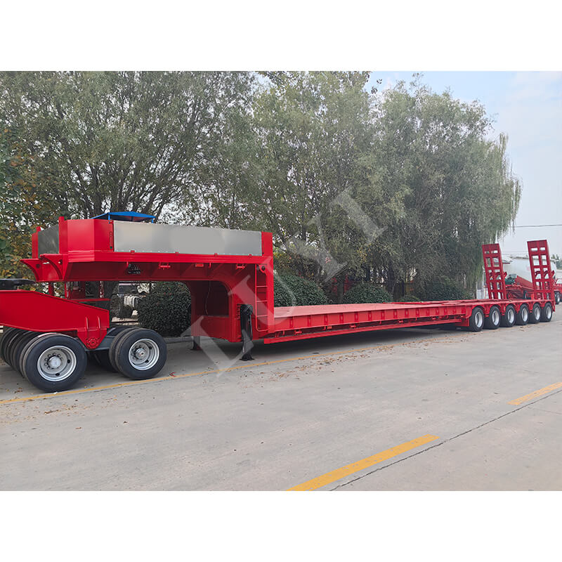 LUYI 6-осный телескопический 100-тонный полуприцеп Lowboy с гибкой шеей, производимый в провинции Шаньдун, Китай, представляет собой высокопроизводительный грузовой прицеп. Его главная балка изготовлена из стали и имеет размеры 14×16×8 мм и имеет прочную конструкцию. При собственном весе 8,5 тонн, погрузочной массе 150-200 тонн и максимальной полезной нагрузке более 30 000 кг он легко справляется с транспортировкой тяжелых грузов.