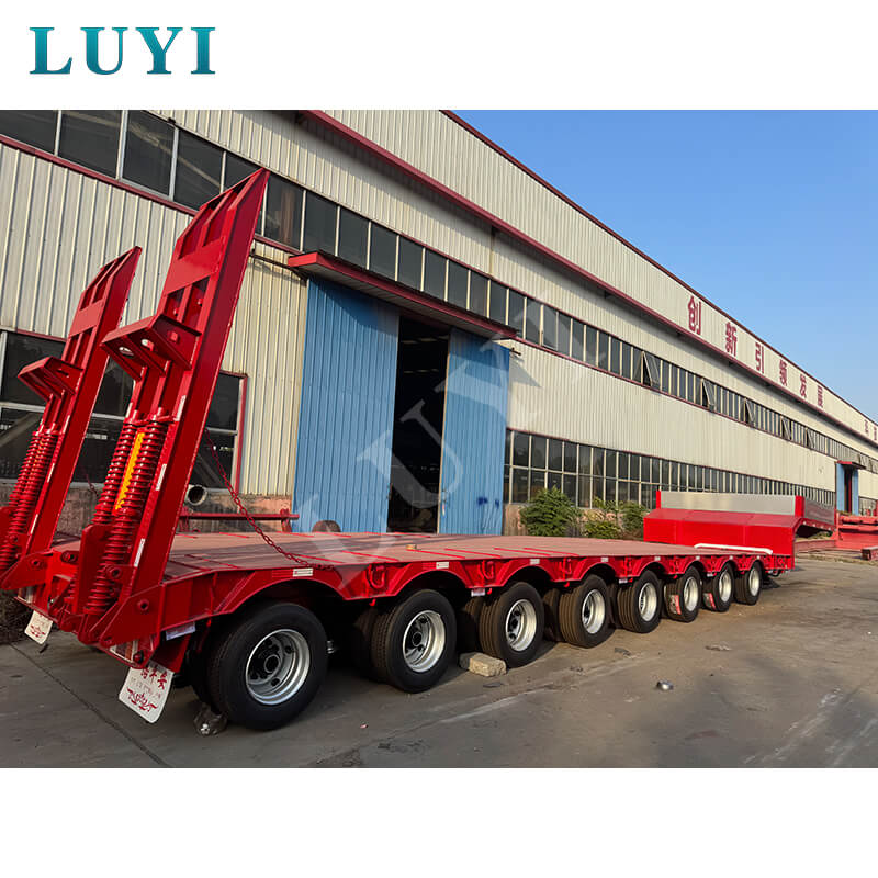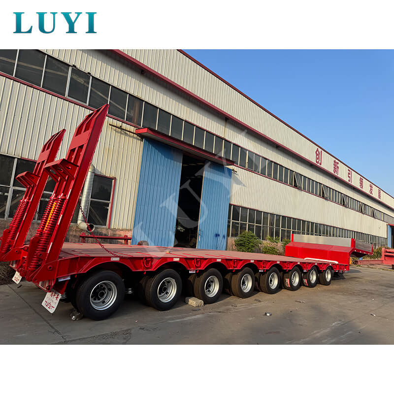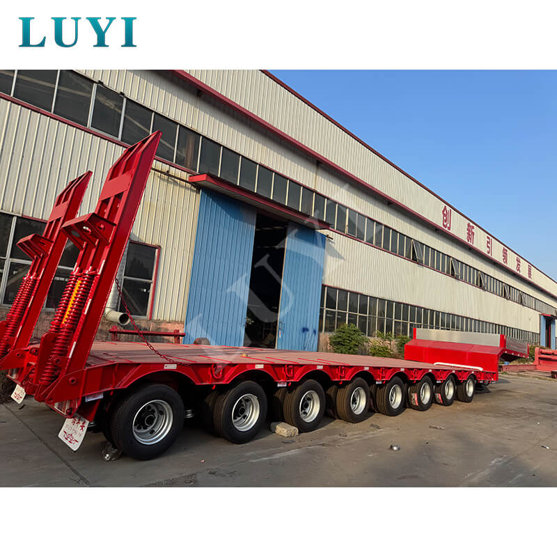 Горячие Теги: 8-осный 150-тонный 40-футовый погрузчик с гидравлическим низкорамным полуприцепом
