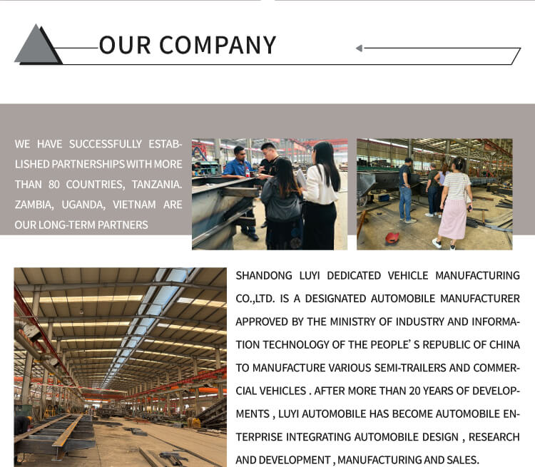 Наш завод производит не только тракторы, но также самосвалы, поливальные машины, автокраны, автобетоносмесители, самосвалы, прицепы-цистерны, низкорамные прицепы, прицепы для пылеудаления и т. д. Наш завод является крупным по размеру и может изготовить различную продукцию в соответствии с различными требованиями заказчика.