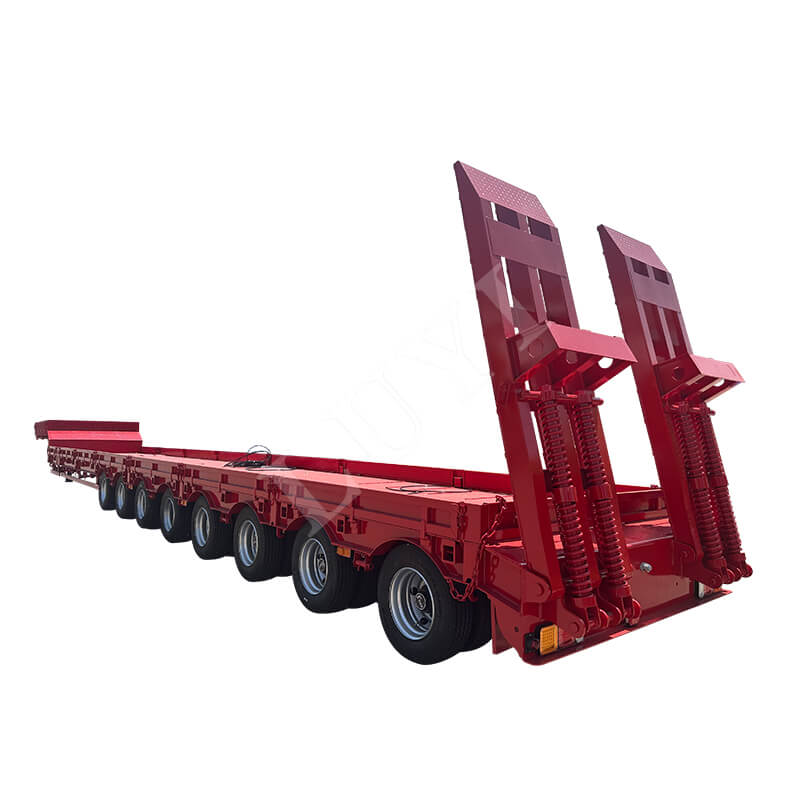 Прицеп имеет функцию выдвижения, что позволяет гибко приспосабливать его к транспортировке тяжелого оборудования различных размеров. Он оснащен стандартным 28-тонным шасси и дополнительными шкворнями JOST размером 2 дюйма (50 мм) или 3,5 дюйма (90 мм), что обеспечивает стабильность соединения и адаптируемость к применению. Настраиваемый по цвету, он становится предпочтительным грузовым прицепом для перевозки тяжелого оборудования благодаря своей надежной конструкции и профессиональной конфигурации.