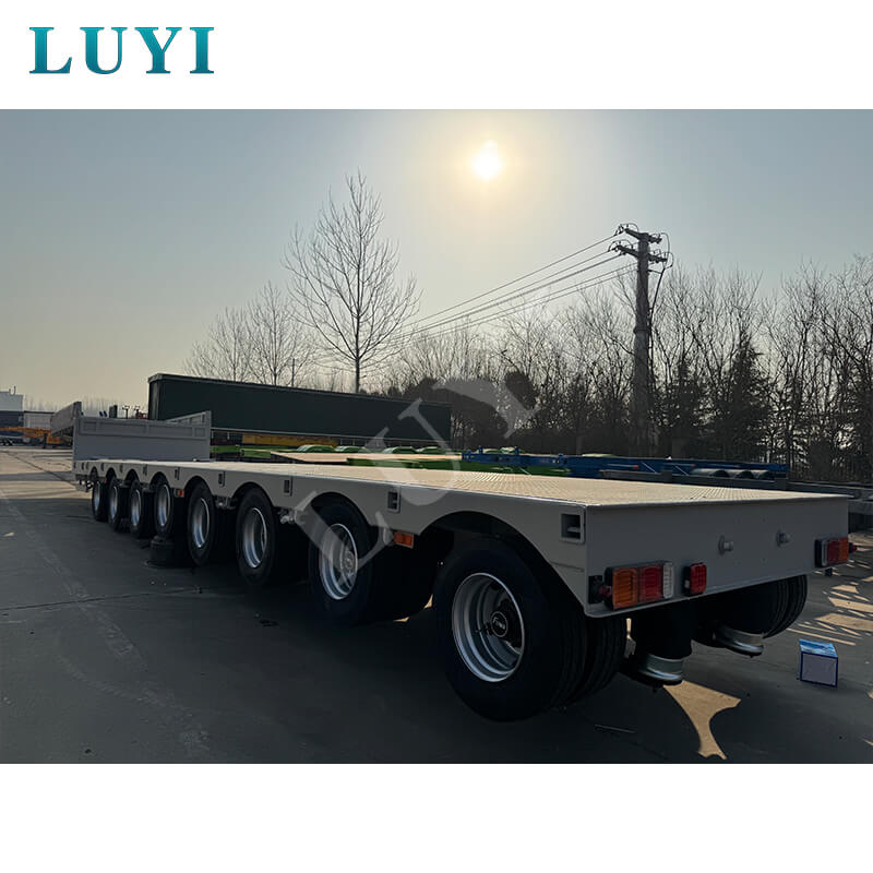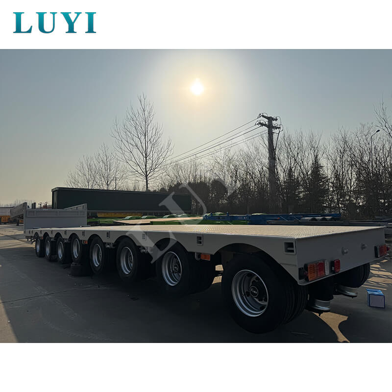 LUYI 8-осный 17-метровый 80-тонный выдвижной низкорамный полуприцеп с пневматической подвеской, высокопроизводительный полуприцеп из Шаньдуна, Китай, предназначен для перевозки тяжеловесного оборудования. В качестве материалов он использует углеродистую сталь или алюминий, имеет выдвижную конструкцию, подходящую для грузов различной длины, и максимальную полезную нагрузку 80 тонн для удовлетворения требований к тяжелым нагрузкам.