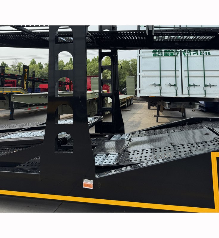 Безопасная система крепления автомобиля: Каждое колесное положение оснащено профессиональными регулируемыми противооткатными упорами и высокопрочными крепежными ремнями, которые обеспечивают надежное крепление каждого автомобиля и его неподвижность во время перевозки.
