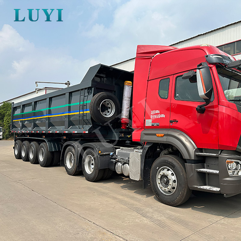 4-осный 100-тонный U-образный гидравлический полуприцеп с задней разгрузкой от LUYI, производимый в Шаньдуне, Китай, является специальным инструментом для перевозки сыпучих грузов, таких как песок, гравий и уголь. Изготовленный из высококачественной углеродистой стали, он имеет точные размеры 12050x2550x3600 мм и максимальную грузоподъемность 100 тонн, а его высокая производительность отвечает потребностям перевозки тяжелых грузов.