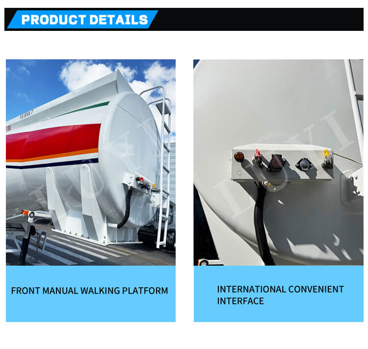 Полуприцеп-топливный бак LUYI с 3 баками емкостью 43 000 л, производимый в Шаньдуне, Китай, представляет собой совершенно новое профессиональное оборудование для перевозки нефти. Его корпус изготовлен из стали, размерами 1085025003800мм. Конструкция с тремя баками позволяет классифицировать загрузку нефтепродуктов, а большая вместимость 43 000 л в сочетании с максимальной полезной нагрузкой 20 001–25 000 кг отвечает требованиям эффективной транспортировки нефти.