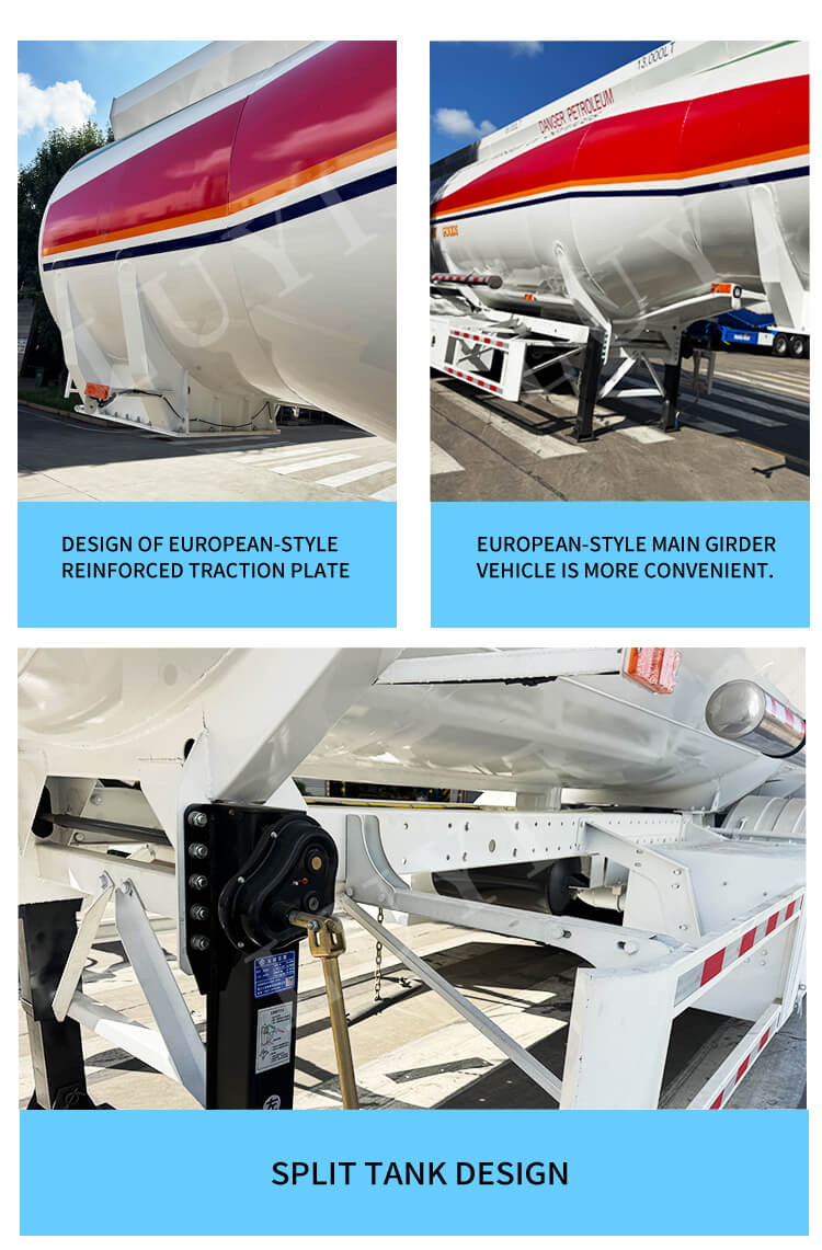 Прицеп имеет прочную и надежную конструкцию. Он оснащен 13/16-тонными мостами таких брендов, как Fuwa, BPW или BERKLEY, и может быть оснащен опциональной механической или пневматической подвеской. Он совместим с шинами различных спецификаций, включая 11.00r20, 12r22.5 и 315/385, обеспечивая стабильное вождение и адаптируемость к различным дорожным условиям. Он поставляется со стандартным 28-тонным шасси и шкворнями 50#/90# для удобной и безопасной эксплуатации. Продукт поддерживает индивидуальные цвета кузова, сочетая в себе практичность и персонализацию, обеспечивая стабильное и эффективное профессиональное решение для транспортировки нефти.