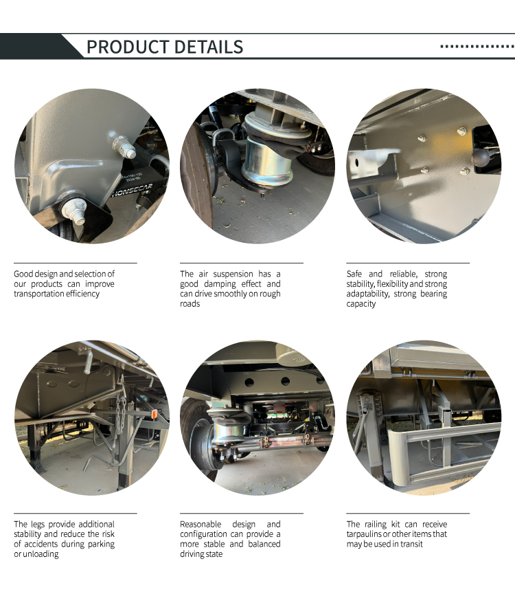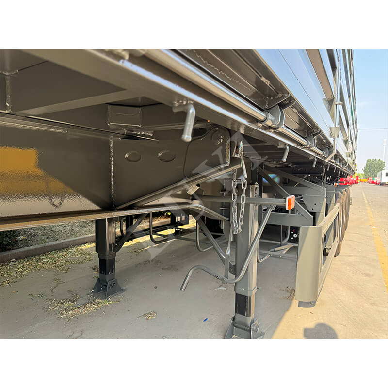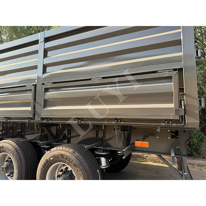 60-тонный 4-осный полуприцеп с боковой разгрузкой LUYI предназначен для перевозки тяжелых сыпучих грузов в таких сценариях, как шахты и инфраструктурные проекты. В нем используется гидравлическая разгрузочная конструкция с боковым опрокидыванием, позволяющая быстро разгружаться в узких пространствах и полностью опорожнять отсек за считанные минуты, что значительно повышает эффективность грузооборота. Основные несущие компоненты изготовлены из высокопрочной долговечной стали в сочетании с 4-осной конструкцией и подушками безопасности с пневматической подвеской. Это не только распределяет давление 60-тонных тяжелых грузов и соответствует нормативным требованиям, но также регулирует жесткость амортизации в зависимости от нагрузки, уменьшая тряску груза и воздействие на дорогу. В этом автомобиле сочетаются эффективная разгрузка, долговечность при тяжелых нагрузках и устойчивость при движении, что делает его надежным выбором для перевозки крупногабаритных грузов.