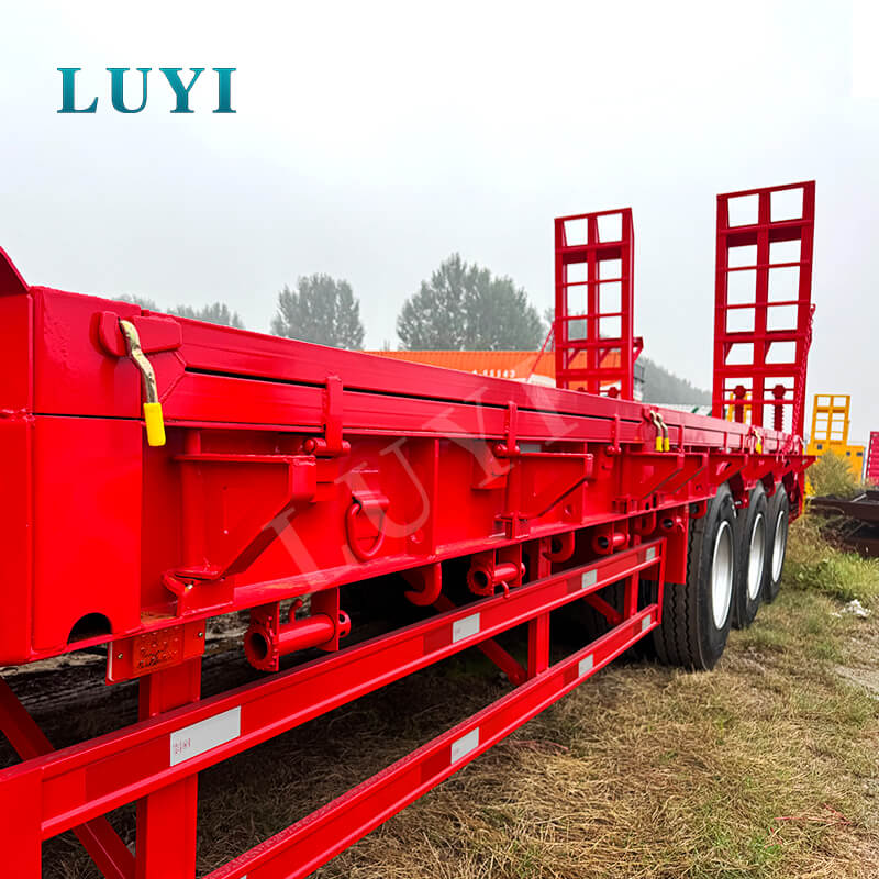3-осный 60-тонный низкорамный полуприцеп со съемной гусиной шеей LUYI, произведенный в Шаньдуне, Китай, является профессиональным грузовым прицепом. Его корпус изготовлен из высокопрочной стали, размеры 1700030001500мм. Конструкция прочная, а места достаточно, что позволяет стабильно загружать тяжелые грузы и адаптироваться к различным тяговым операциям грузовиков.