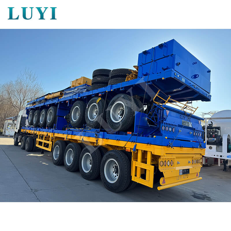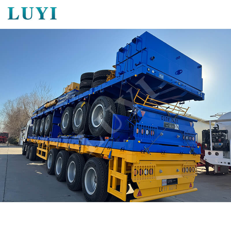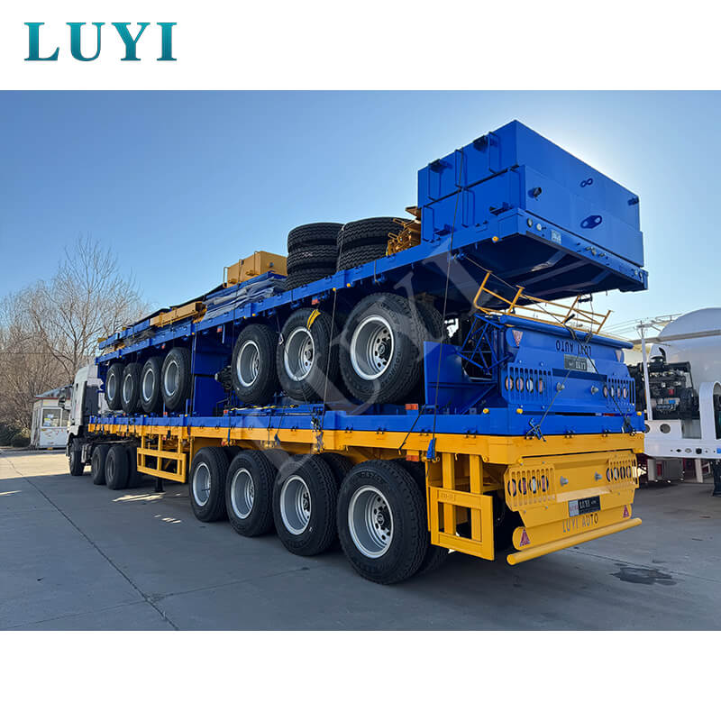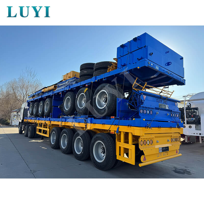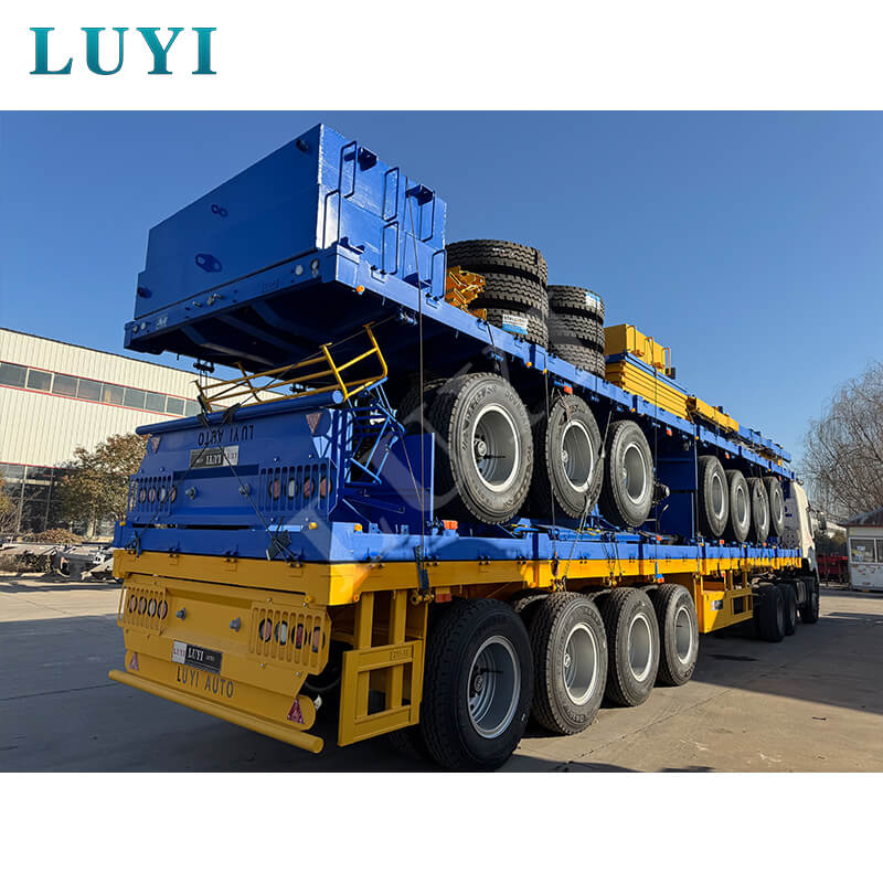 3-осный 40-футовый бортовой полуприцеп-контейнеровоз LUCKIN китайского производства специально разработан для буксировки грузовых автомобилей, что делает его идеальным выбором для перевозки контейнеров. Изготовленный из высокопрочной стали, он имеет размеры 12500×2500×1500 мм и имеет прочную и долговечную конструкцию.