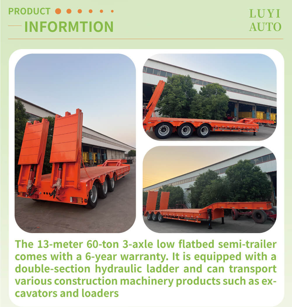 3-осный 60-тонный низкорамный полуприцеп со съемной гусиной шеей LUYI, произведенный в Шаньдуне, Китай, является профессиональным грузовым прицепом. Его корпус изготовлен из высокопрочной стали, размеры 1700030001500мм. Конструкция прочная, а места достаточно, что позволяет стабильно загружать тяжелые грузы и адаптироваться к различным тяговым операциям грузовиков.