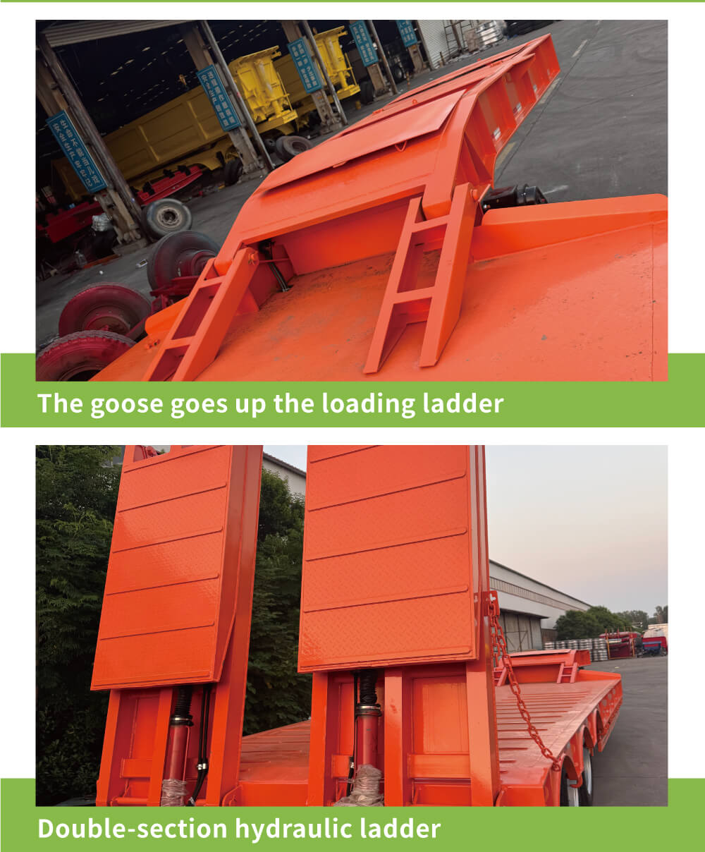 Прицеп оснащен 3-осной конструкцией в сочетании с пневматической или листовой рессорной подвеской, которая обеспечивает превосходную устойчивость при движении и эффект амортизации, что позволяет уменьшить повреждение груза при ударах во время транспортировки. Он оснащен 28-тонным шасси для стабильной и надежной поддержки, а лестница имеет два варианта: гидравлический или ручной, что облегчает погрузку и разгрузку груза. На продукт предоставляется 6-летняя гарантия и поддерживаются индивидуальные цвета кузова в соответствии с потребностями клиента, сочетающие в себе практичность и персонализацию для удовлетворения профессиональных требований различных сценариев перевозки.